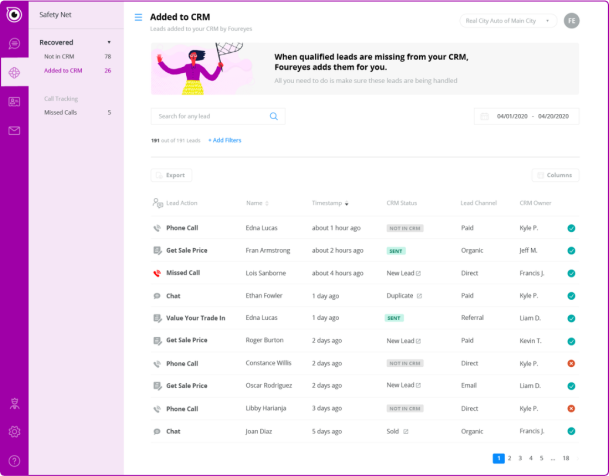 If a lead showing buying intent hasn’t made it into your CRM within two hours, Foureyes will log it for you – even delivering a real-time alert about the recovered lead. With summaries delivering important insights about forms, chats, and phone call leads, your team gets a head start when reaching back out.