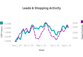 See the interplay of inventory trends with demand for both the new and used markets. View demand indicators, including vehicle detail page (VDP) views, lead counts, and the leads required per sale, side-by-side with inventory, pricing, and discounts.